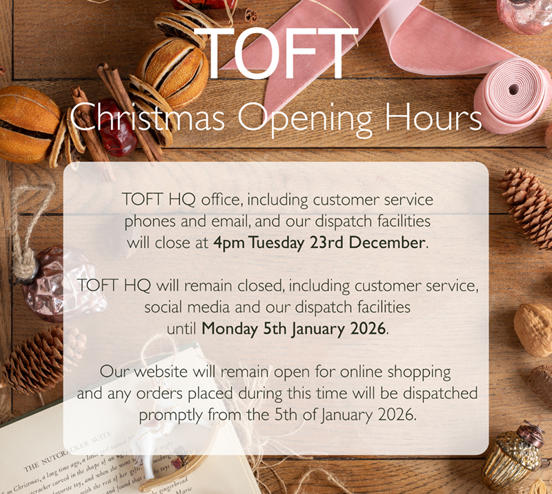 The TOFT website is open all day every day for online shopping. You can purchase all of our products here, and if you're looking for our latest releases you can shop our NEW section by clicking or tapping here.