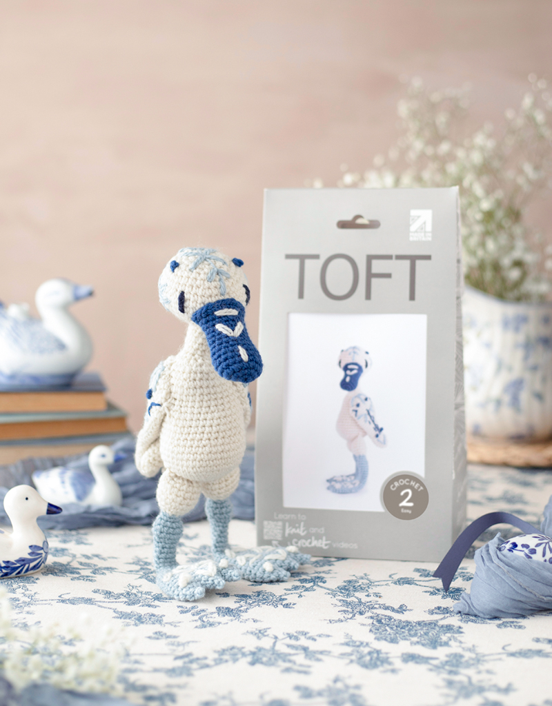 All of the patterns inside are made in TOFT pure wool Double Knitting (DK) using a 3mm hook. The resulting average dinosaur sits around 18cm in height Each dinosaur takes between 100g and 150g of TOFT DK wool to make. It is very easy to make larger dinosaurs. Just use exactly the same patterns but swap your yarn for TOFT ARAN and a 5mm hook for a dinosaur that is around 24cm tall or TOFT CHUNKY and an 8mm hook for a dinosaur that is around 34cm tall.