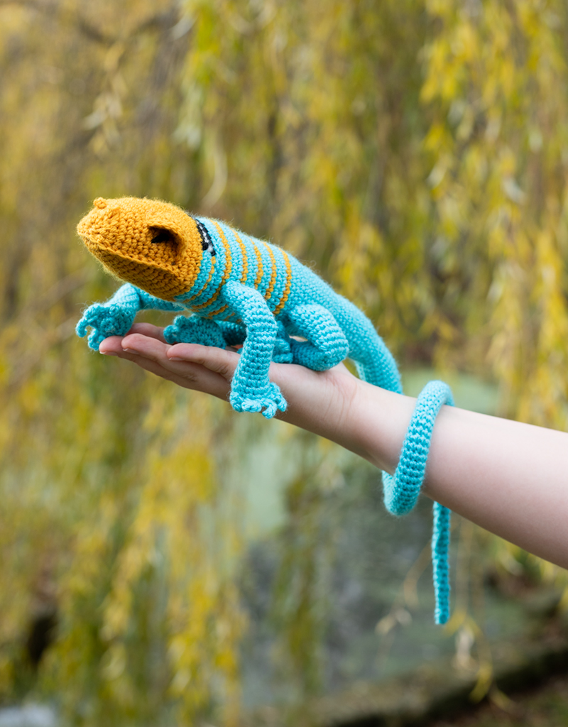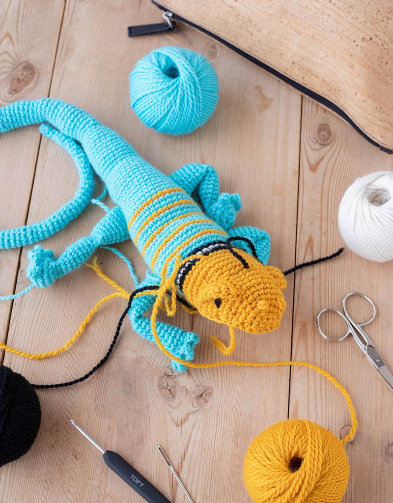 Erik the Collared Lizard first appeared as an instalment of TOFT's Dye Club subscription, and now joins the menagerie in one of our permanent colour options. We've chosen a vibrant combination of 'Turquoise' and 'Yellow' with 'Black' to create the distinctive stripes around the back of the lizard's neck, which is how the species gained its name. Did you know that if a collared lizard loses its tail, it won't grow back?