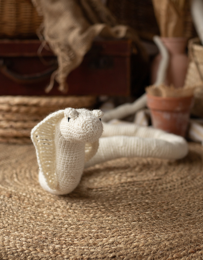 Mei the Cobra first joined the menagerie as an instalment of TOFT's Dye Club subscription. The Cobra is a highly venomous snake with a distinctive hood that makes it appear larger to a predator. There are over 30 species of cobra, all varying in colour and size, but all have the ability to elevate one third of their body off the ground to defend themselves.