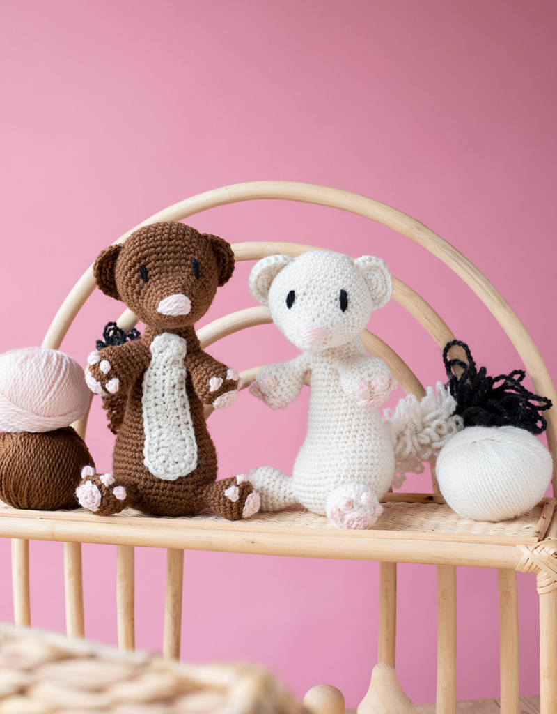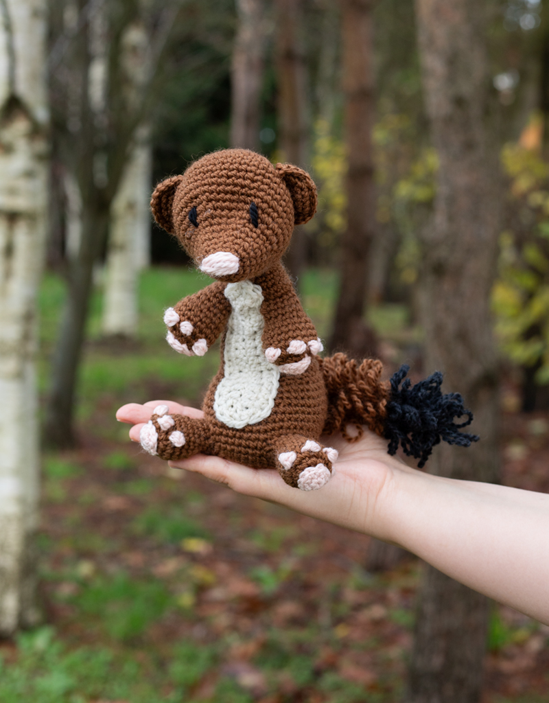 Also known as a short-tailed weasel or ermine, the stoat is a highly adaptable species that can be found all over the world particularly in snowy alpine areas such as Canada and Alaska. The most distinctive feature of the stoat is the way its coat dramatically changes colour, from a reddish-brown (crocheted in TOFT's 'Fudge') during the summer to a snow-white (TOFT's 'Cream') in the winter in order to blend into their environment.
