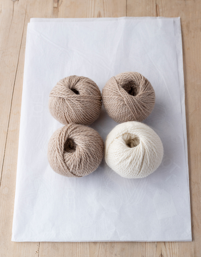 THIS CROCHET KIT CONTAINS: 100g of TOFT's luxury DK pure wool yarn in the colours of your choice and yarn for facial features.