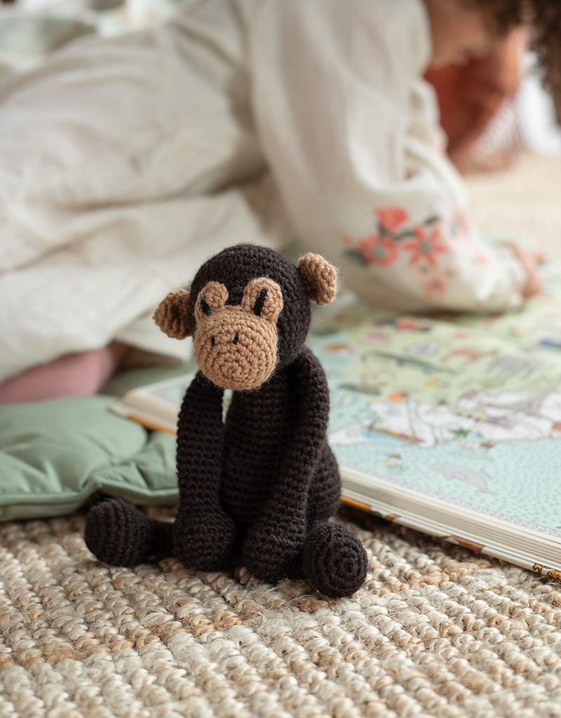 Benedict the Chimpanzee is one of the first apes to join the menagerie and has been a firm favourite for over ten years. Chimpanzees are highly social animals known for their intelligence, and are thought to be our closest living relatives along with bonobos, sharing almost 99% of our genetic blueprint. This monkey pattern is the perfect place to start if you're thinking about learning to crochet.