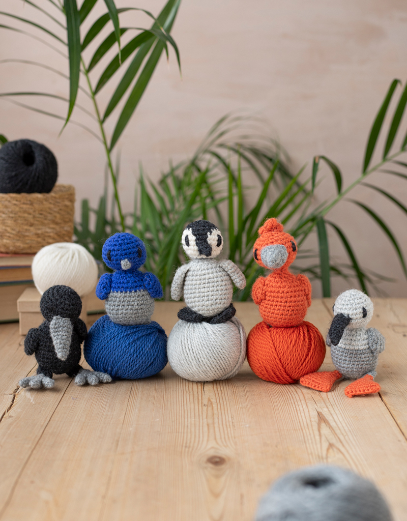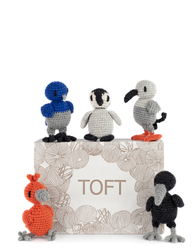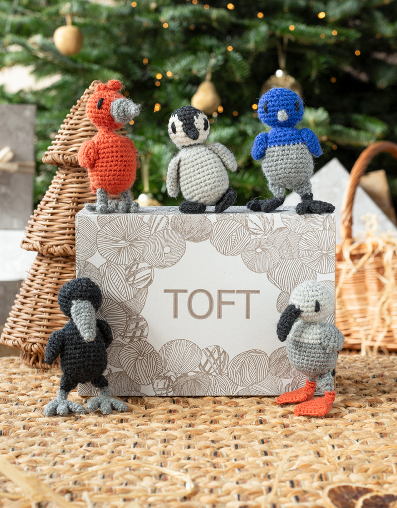 Crochet a flock of adorable baby birds with TOFT's Fledglings Discovery Box, complete with yarn and patterns to make a baby raven, swift, seagull, macaw and penguin.