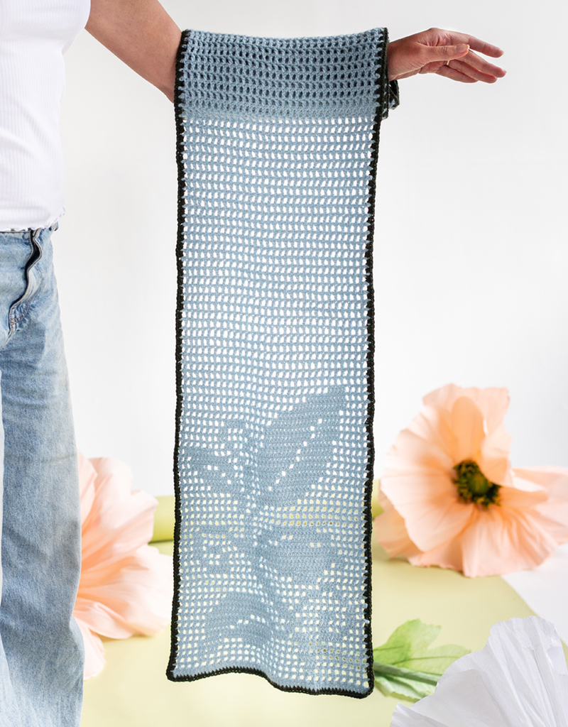 Ever tried 'filet' crochet? Create a pretty picture with just trebles and chains as you crochet the Vine Scarf.