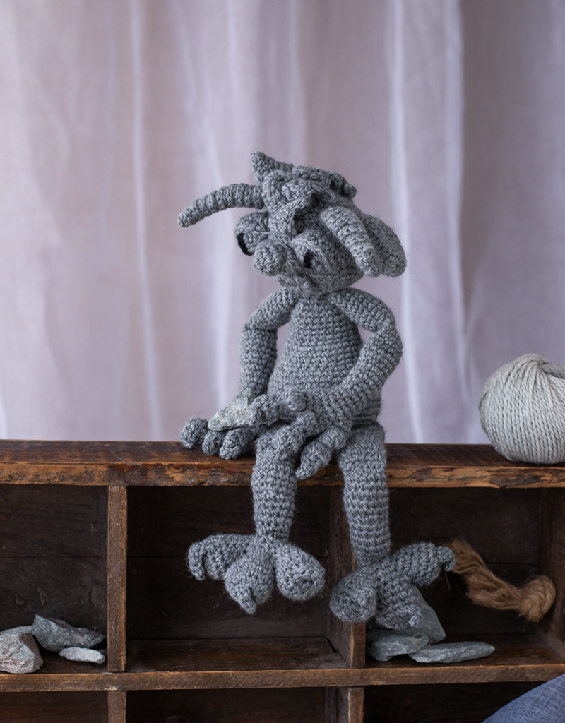 YOU WILL NEED: To complete your crochet Gargoyle you will need a few added extras including a 3mm crochet hook, toy stuffing and a wool needle. Find everything you need in our haberdashery section or upgrade to a complete kit which includes all of the above!