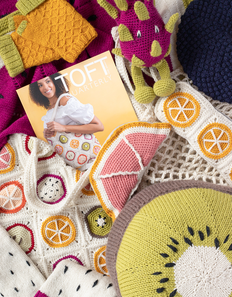 Perfect for gifting this Christmas, TOFT's Modern Maker's Box contains our beautiful DK yarn in a selection of bright and vibrant colours, and a copy of three different TOFT pattern collections - Summer 2023, Spring 2024 and Summer 2025. The yarn included in the gift box is enough to make a variety of projects from the magazines including knit and crochet options, or you could add it to your stash to put towards a larger project.