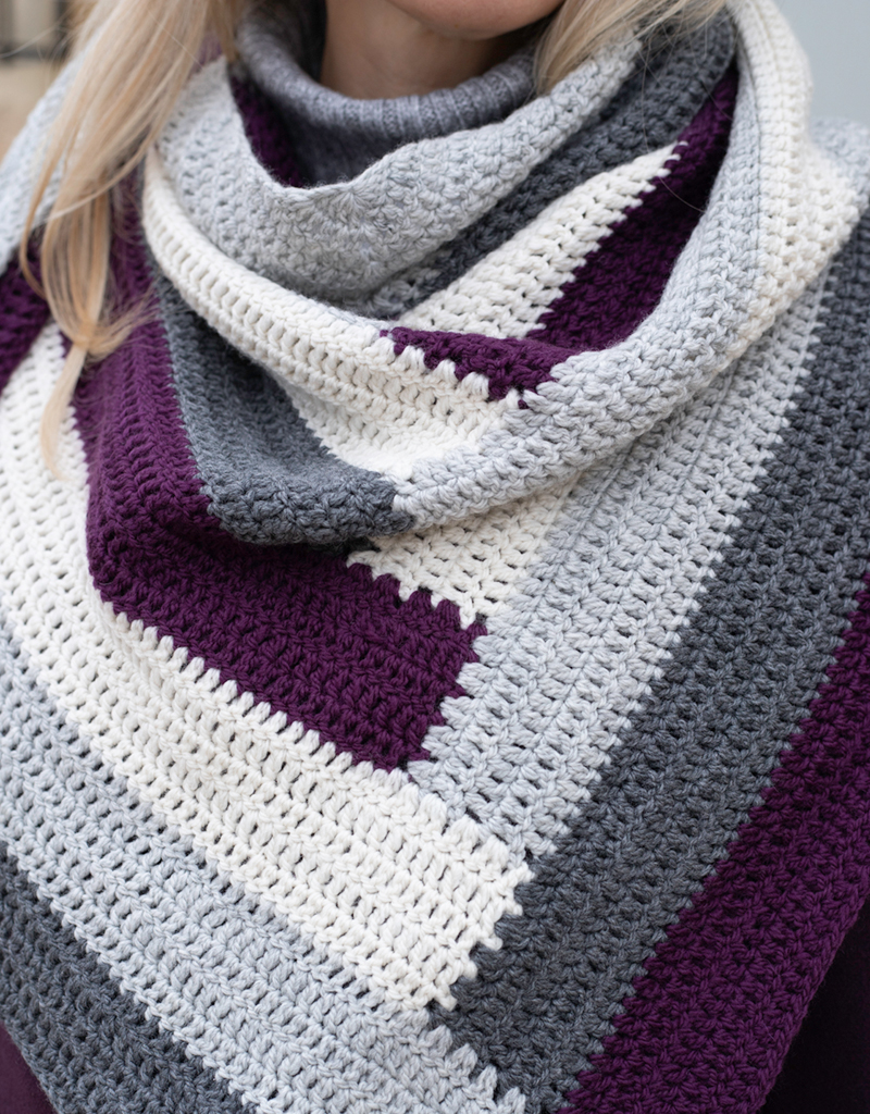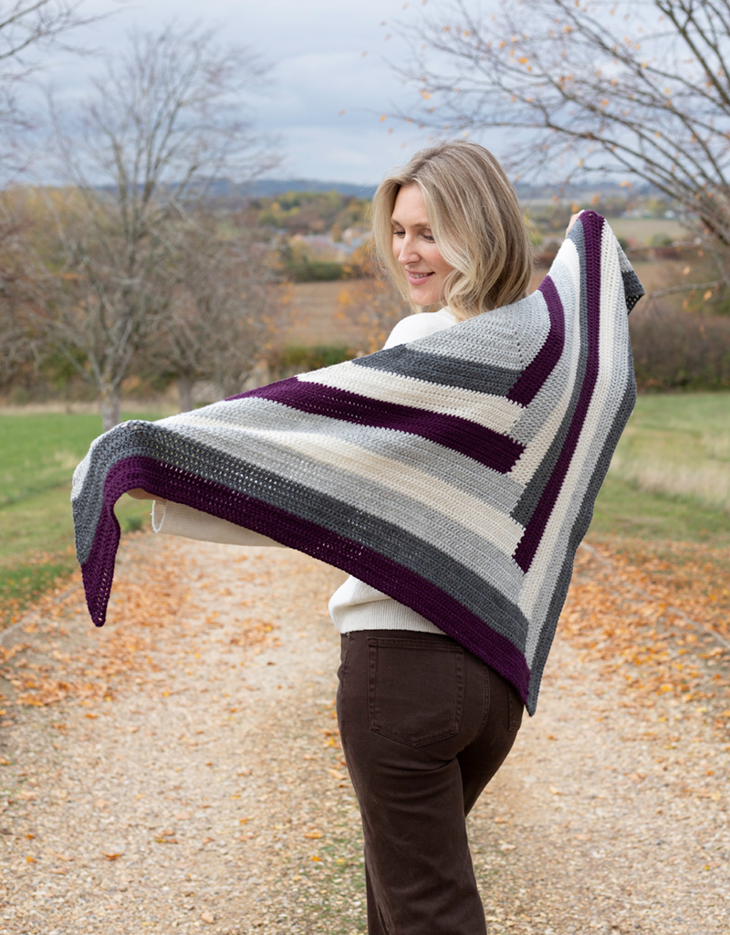 The Elderberry Shawl is a 'no-sew' shawl that will look great in all your favourite TOFT colour combinations.