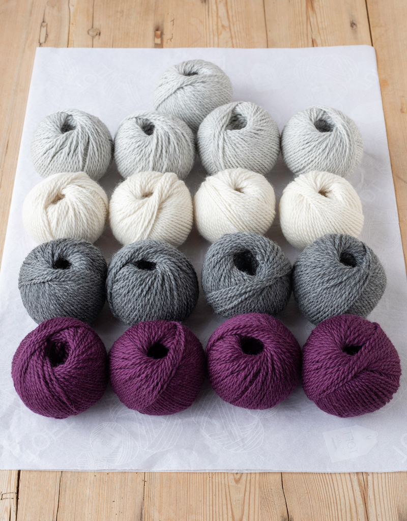 425g of TOFT's luxury DK pure wool yarn in the colours of your choice.