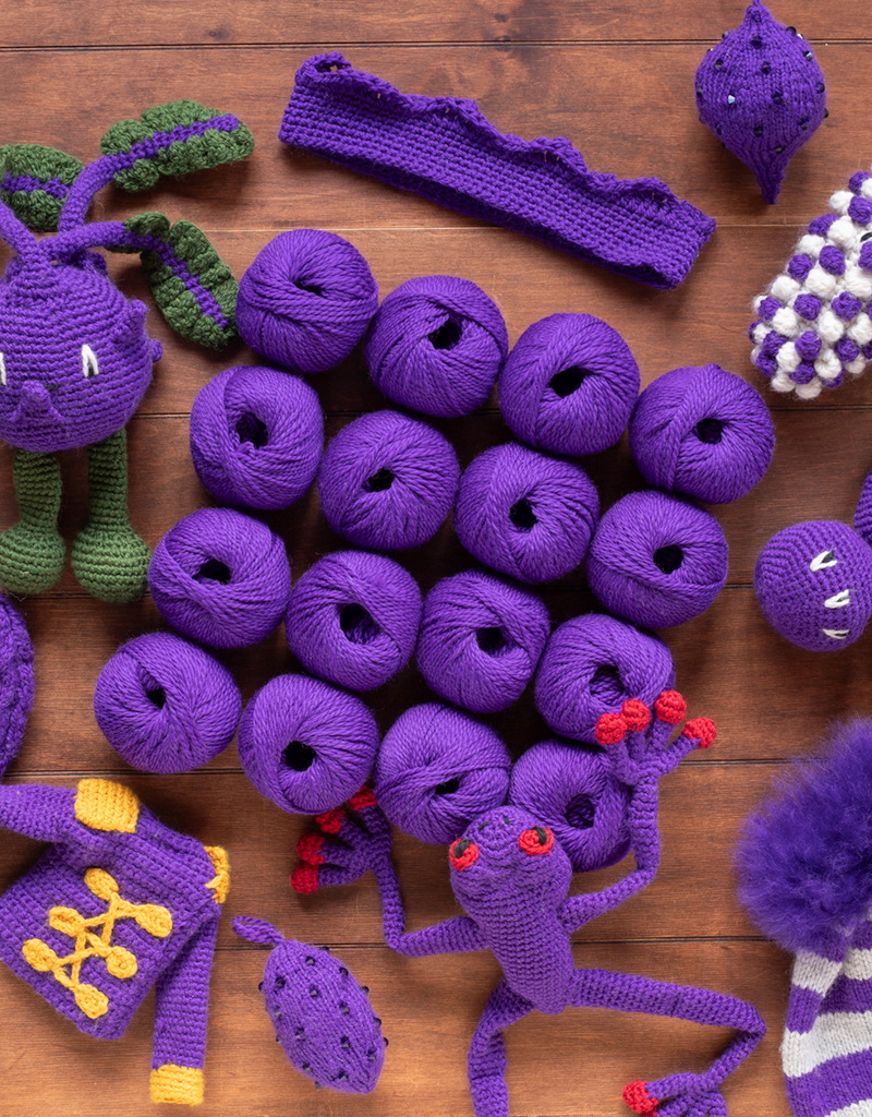 Whether you're thinking of knitting a hat or crocheting one of Kerry Lord's menagerie of animals, dolls, birds and more, we've packed the last of our old batch 'Amethyst' DK into this half price box. It's your last chance to get your hands on this colourway, which won't be spun again.