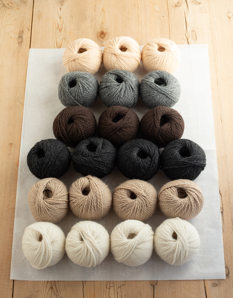 525g of TOFT's luxury DK pure wool yarn in the following colours: